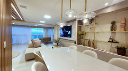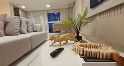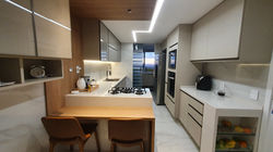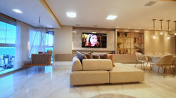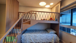 Well-Being and Daring are part of the formula of this cozy and unusual apartment, with lighting innovations, sophisticated joinery and even a contemplative swing on the balcony overlooking the sea!!!