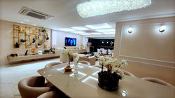 Apartment on Praia de Boa Viagem decorated with classic and contemporary adornments, endowed with its own vigorous personality and glamour! Boiseries and illuminated frames prevail, reinforcing the scenography!